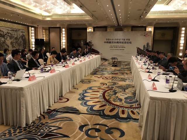 剛才樸銀夏大使在發(fā)言中提出,甚至是有些悲觀地說今天是唯一一場中韓之間關(guān)于未來戰(zhàn)略方向發(fā)展的對話。但其實(shí)在我們討論的過程中,習(xí)近平主席和文在寅總統(tǒng)已經(jīng)互通賀電,互相慶祝中韓建交25周年。兩國最高領(lǐng)導(dǎo)人都表示要鞏固政治互信,妥善處理分歧,推動(dòng)兩國關(guān)系的健康穩(wěn)定發(fā)展。我想,這是我們大家共同的心聲、共同的愿望。今天我們所有在會(huì)上的各位,都愿意看到我們兩國的關(guān)系向著更為和平健康的方向發(fā)展。