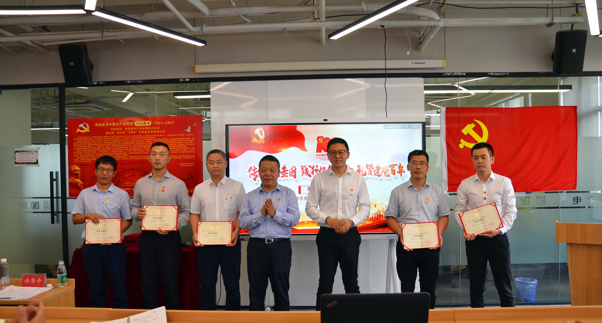 6月25日,國能中電集團本部隆重舉行慶祝中國共產(chǎn)黨成立100周年大會,設(shè)1個主會場,6個分會場,公司董事長、黨總支書記白云峰等黨員領(lǐng)導(dǎo)干部、全體黨員、入黨積極分子以及業(yè)務(wù)骨干等共計100余人參會。中國青年企業(yè)家協(xié)會常務(wù)副會長許華平蒞臨現(xiàn)場講授黨課并指導(dǎo)工作。大會進行了奏唱國際歌、黨課教育、黨員社會責(zé)任聯(lián)名簽署、先進表彰以及重溫入黨誓詞等環(huán)節(jié)。